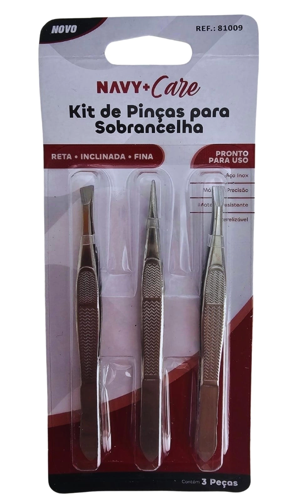 KIT COM 3 PINÇAS PARA SOBRANCELHAS